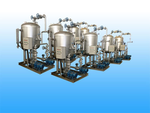 冷凝水是高質(zhì)量的水,而且它含有大量的熱量,所以在蒸汽供熱系統(tǒng)中回收冷凝水是節(jié)能水的重要措施之一。高溫水如果直接用泵抽送,泵前形成的負(fù)壓會(huì)使冷凝水汽化,造成氣蝕,嚴(yán)重時(shí)會(huì)由于氣體體積膨脹而發(fā)生爆裂,損壞水泵。所以傳統(tǒng)冷凝水回收發(fā)放是將其冷卻降溫后再用泵抽送。這樣就無法利用冷凝水所含有的大量熱能,而且由于冷凝水滲入了未經(jīng)處理的冷水,使水質(zhì)惡化,還要重新進(jìn)行處理。不但浪費(fèi)了能源,還增加了入場用水量及水處理費(fèi)用。冷凝水回收器設(shè)計(jì)了氣蝕消除措施,能確保水泵直接抽送高溫冷凝水而不發(fā)生氣蝕現(xiàn)象。冷凝水回收可廣泛用于化工、輕工、食品、紡織、橡膠、冶金、電力、機(jī)械等工業(yè)及餐飲、醫(yī)院、商場、旅館、辦公樓、民用建筑等所有使用蒸汽作為生產(chǎn)、采暖、空調(diào)、生活熱水等熱源的系統(tǒng)。